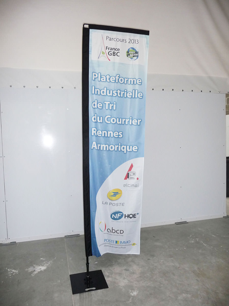 - Kakémono sur enrouleur ou structure rigide, facile à transporter et à monter